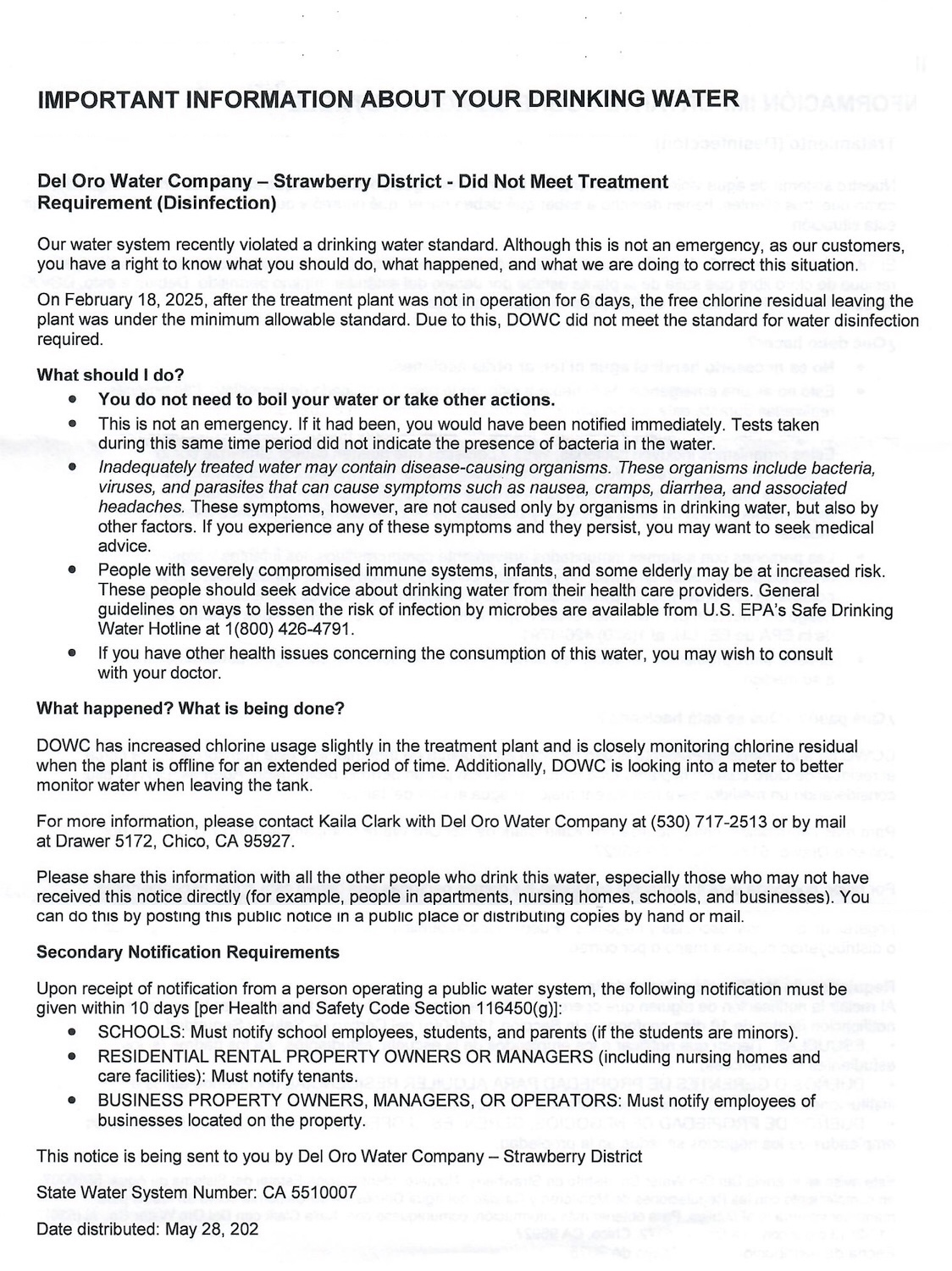 Del Oro Water Company (DOWC) violated an important water