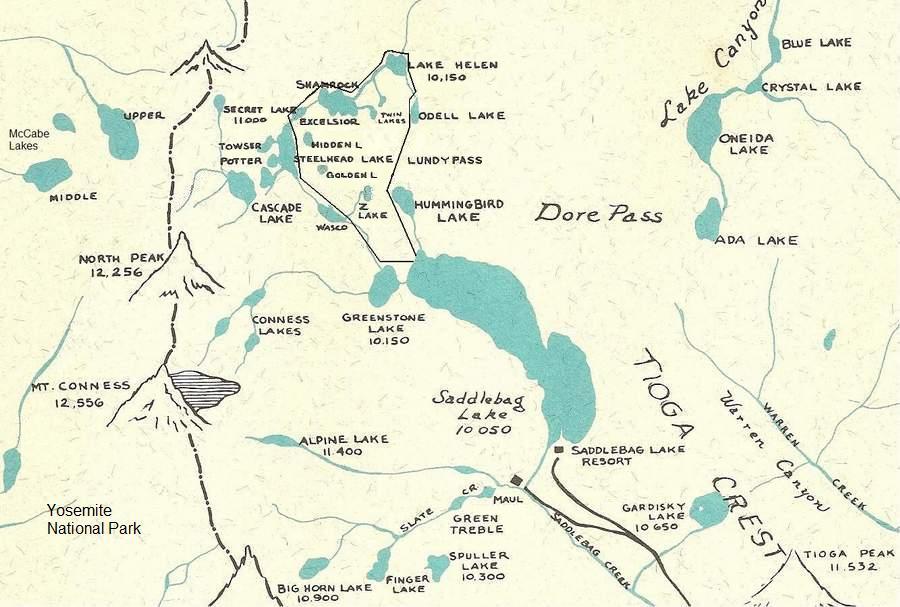 alpine. The basin includes Saddlebag Lake (largest lake) plus 20+ other lakes that are all above 10,000' and relatively close to each other. The